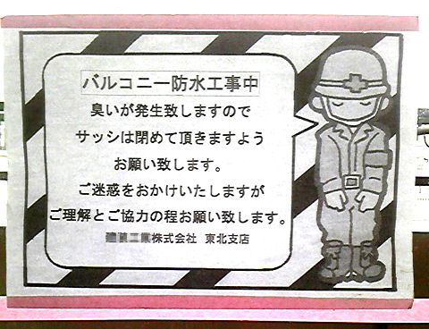 (今、うちのマンションは改修工事中で、ベランダで作業員の方がお仕事してたりします。)